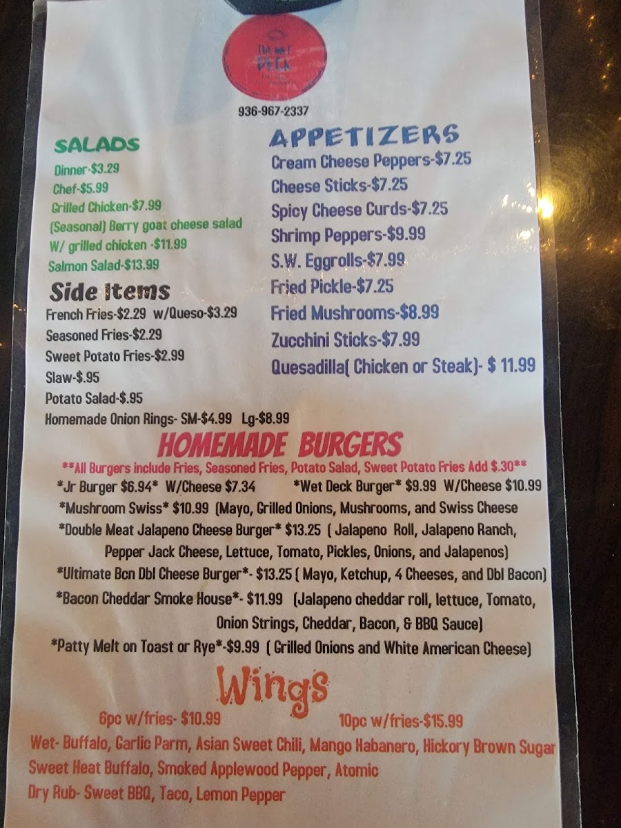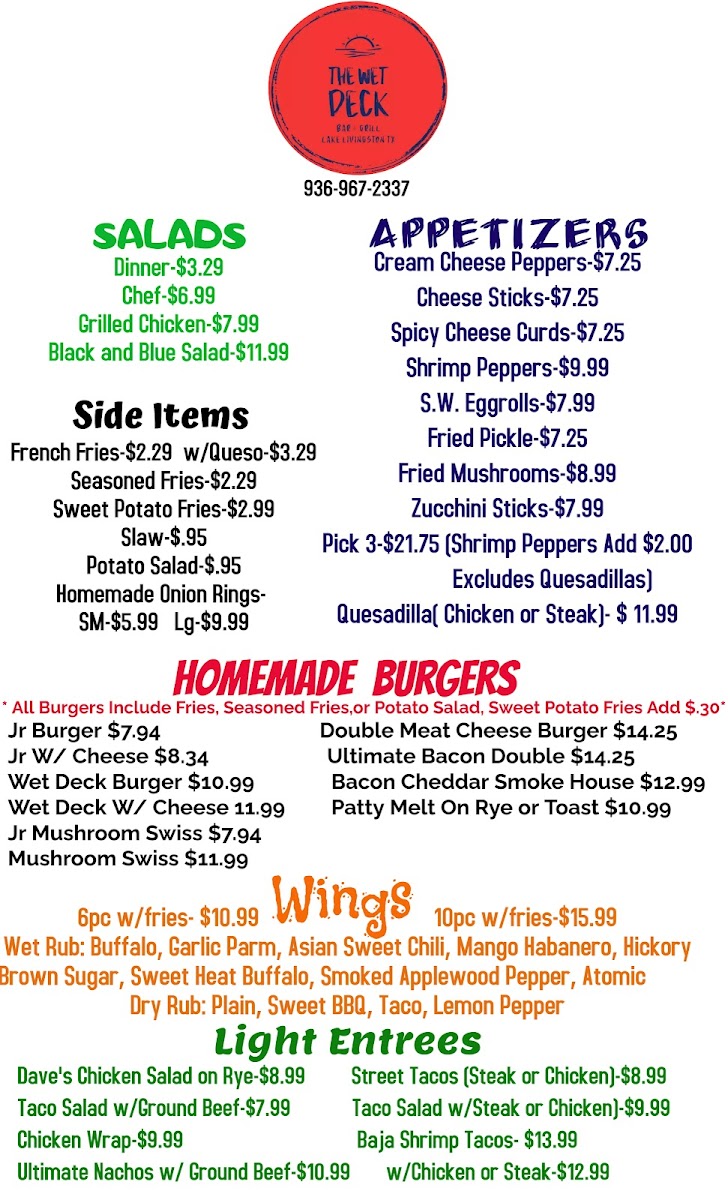 Wet Deck Bar & Grill Menu